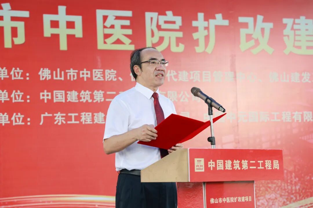项目施工单位代表、中建二局华南分局副局长钟志林在发言中表示,将联合各参建方聚焦品质把控与安全管理,以高标准完成项目建设任务,力争将项目建成政府放心、业主满意、改善民生的精品工程、示范工程、廉洁工程,为佛山卫生健康事业高质量发展贡献力量。